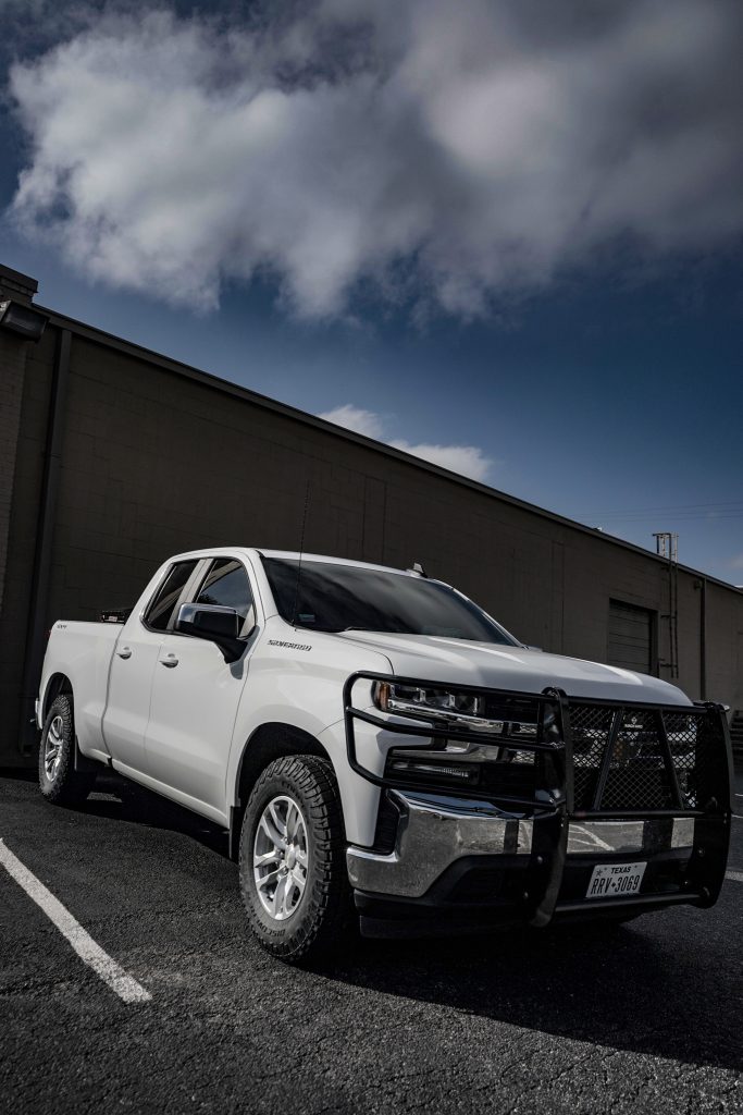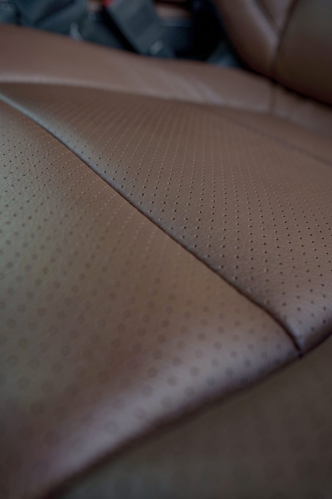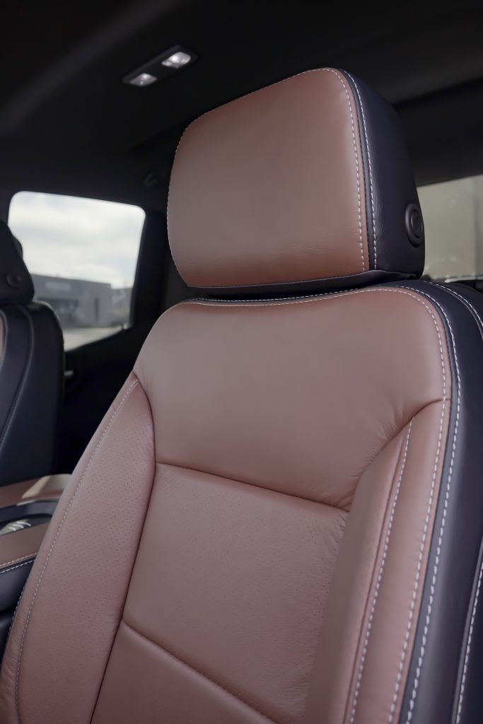 2020 Chevy Silverado D-Cab – LEATHER 2020 Chevy Silverado D-Cab Black leather – Mahogany face with perforated combo style inserts and silver contrasting stitch with Degreez Heated and Cooled seat Reference 99079