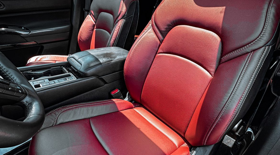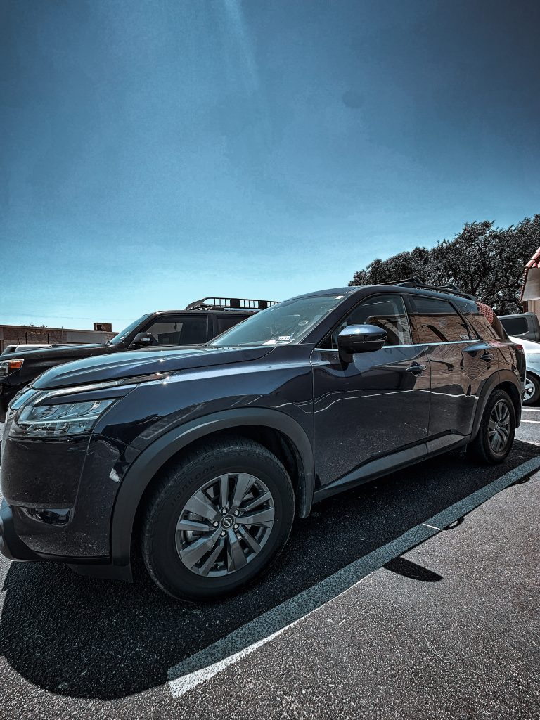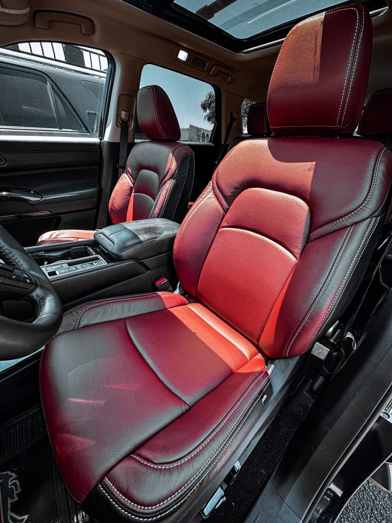 2022 Nissan Pathfinder- Leather 2022 Nissan Pathfinder #98053 – Black Wrap, Medium Red Face, Perforated Insert, Silver All Stitch