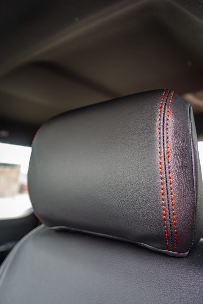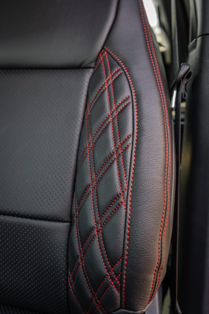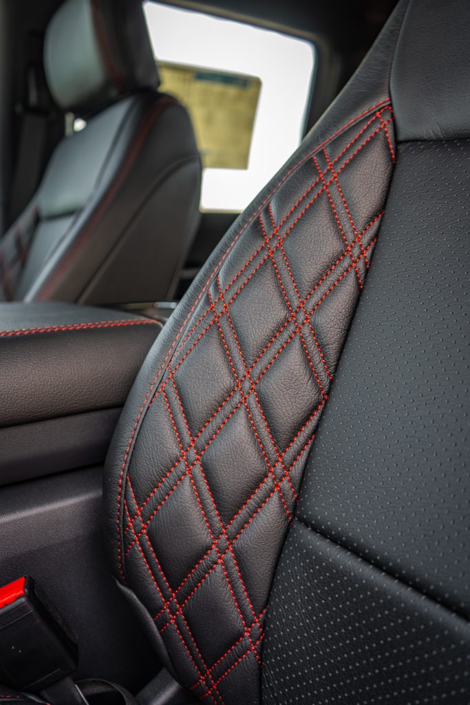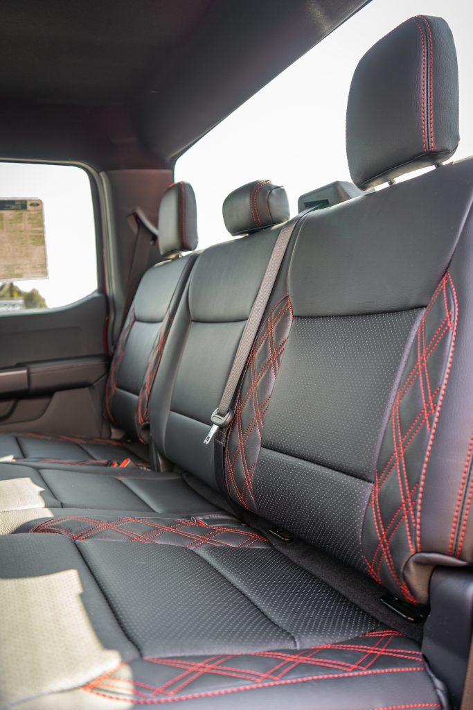 2024 F-150 SUPER CAB – LEATHER 2024 F-150 Super Cab Black Katzkin Leather – Perforated Combo – Red Seam- Double Tekstitch on Wings