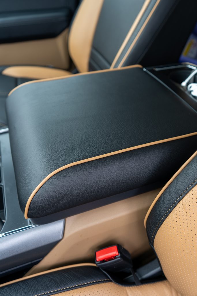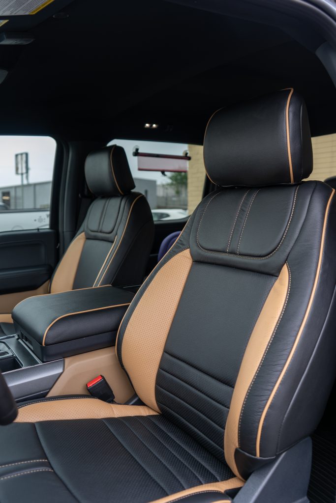 2024 Ford F-150 Super Crew – LEATHER 2024 Ford F-150 Super Crew – LEATHER Black Wrap- Tan Insert – Perforated Wings – Tan Contrast Stitch – Tan Piping