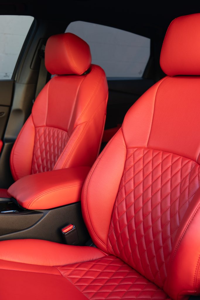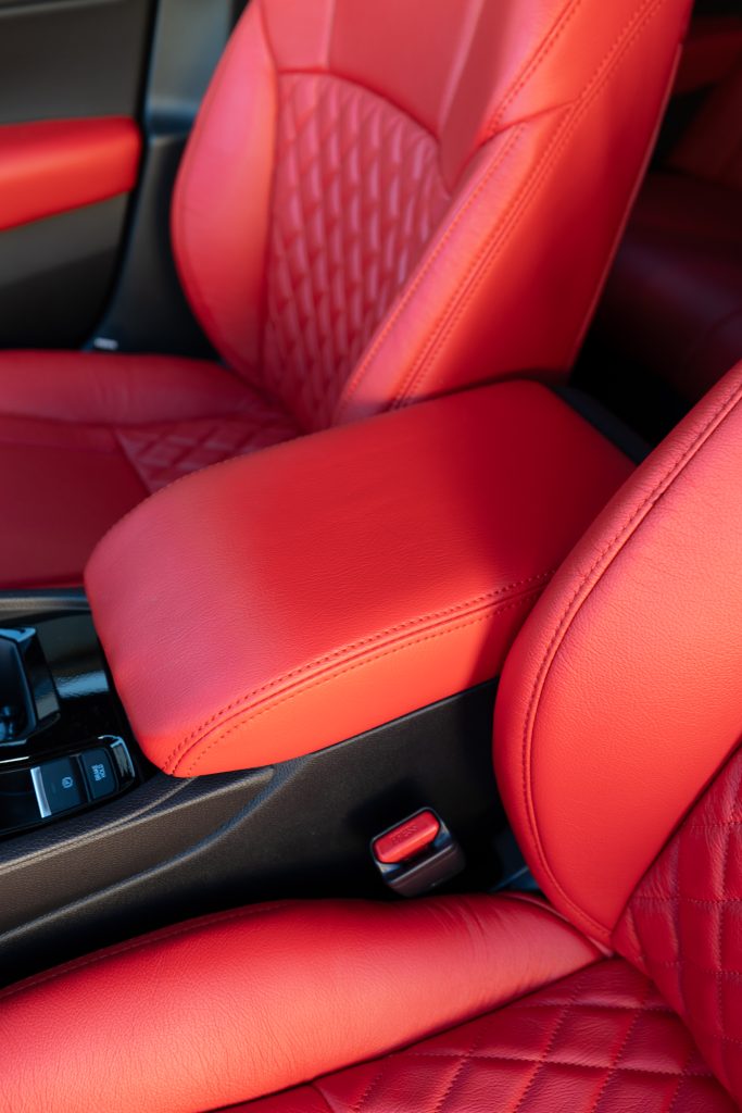 2024 HONDA ACCORD – LEATHER 2024 HONDA ACCORD – SALSA RED LEATHER – RECOVERED ARM PADS + RECOVERED CENTER CONSOLE WITH SALSA RED STITCH REFERENCE 99651