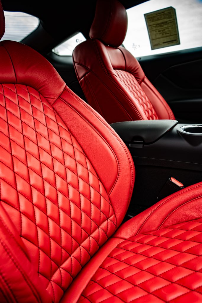 2024 Mustang GT – LEATHER 2024 Mustang GT Red Wrap with TekStitch & a Black Contrasting Seam Reference 99306