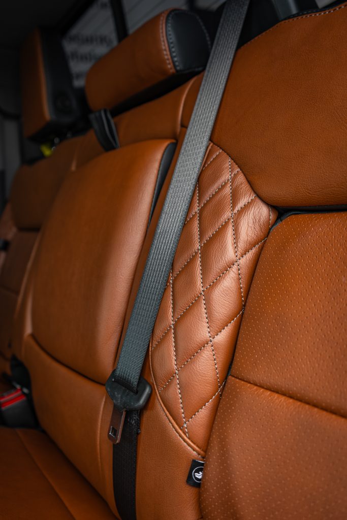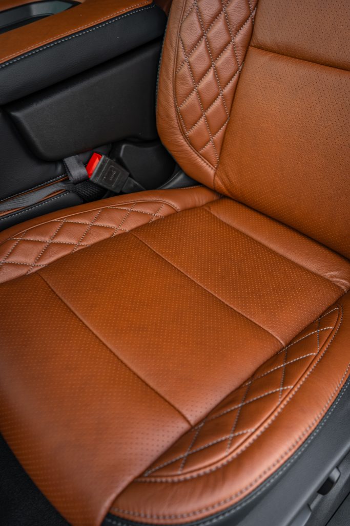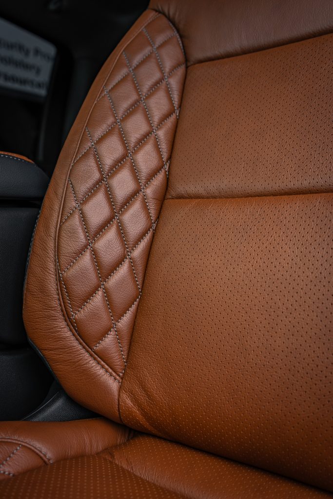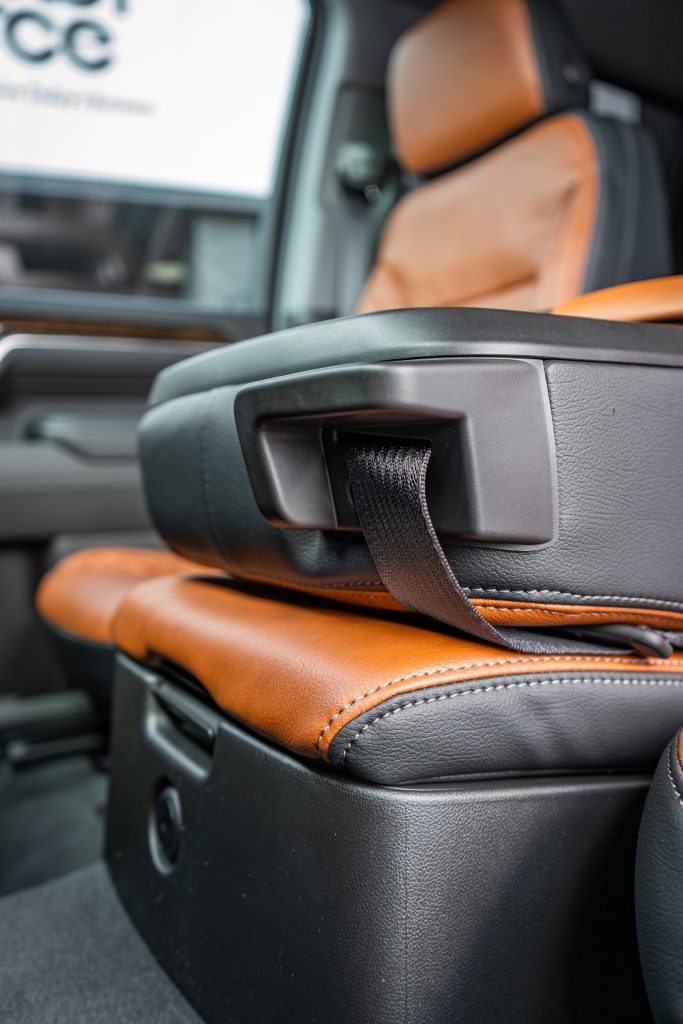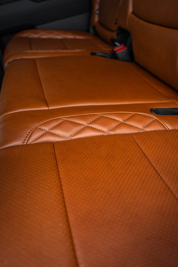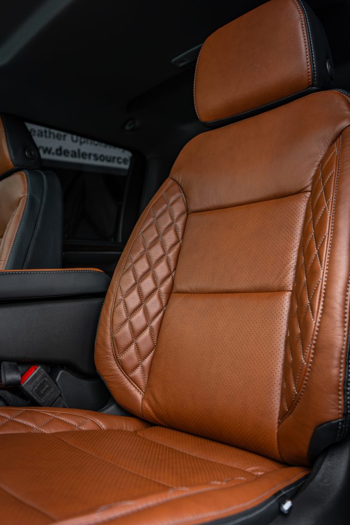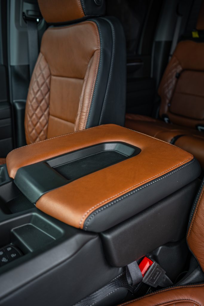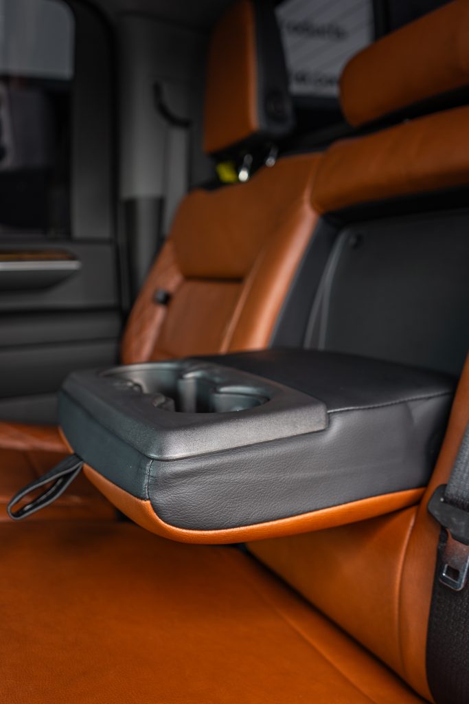 2024 Sierra Crew Cab 3500 – LEATHER 2024 Sierra Crew Cab 3500 Black leather, Mahogany Face, Stone Seam, Perforation Combo, Tek Stitch Reference 100582