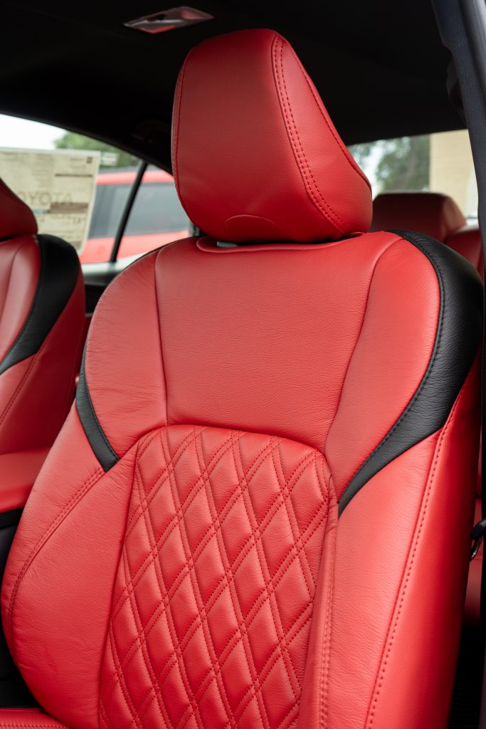 2025 Camry – LEATHER 2025 Camry -Red TekStitch with Black Wings -Upgrades to the Dash & Door Panels Reference 100254