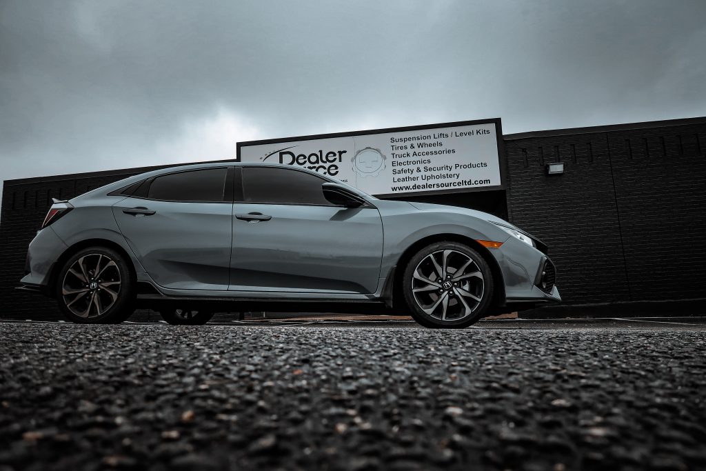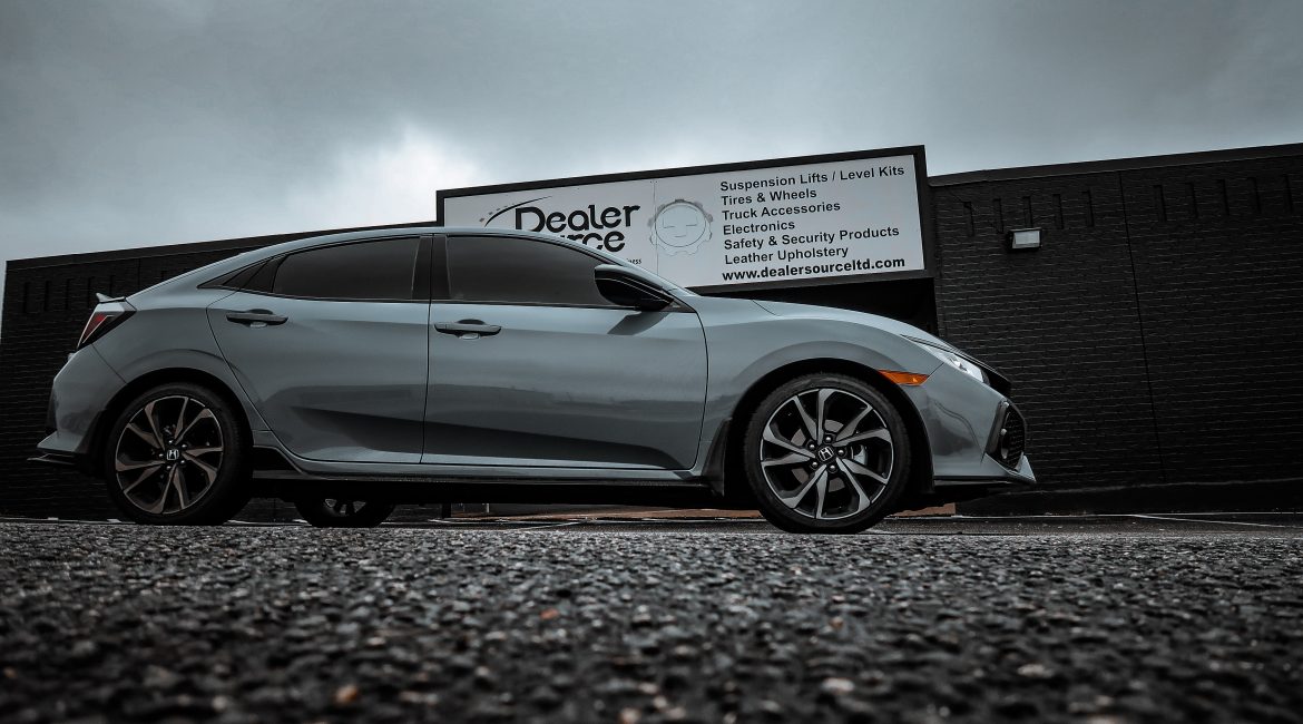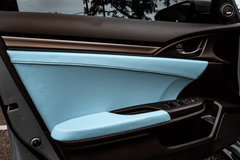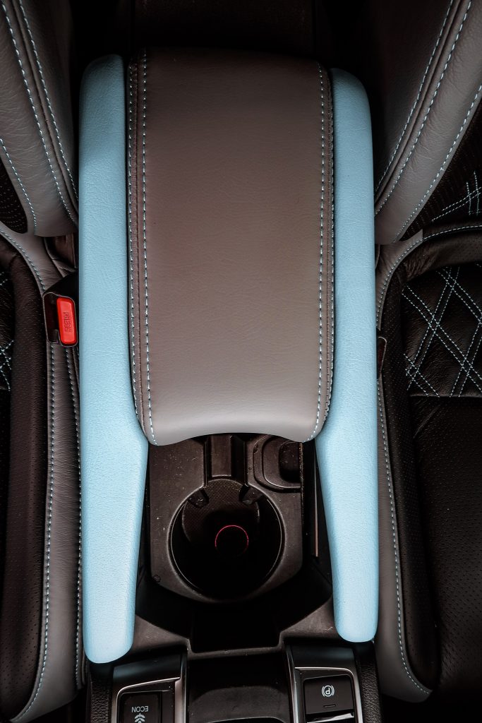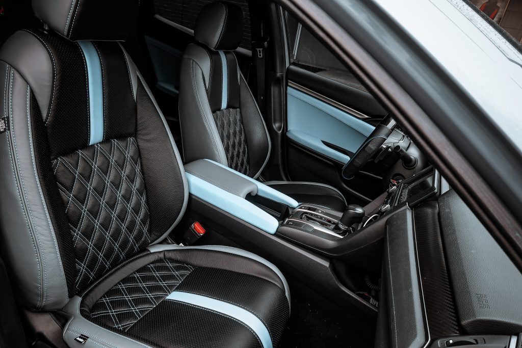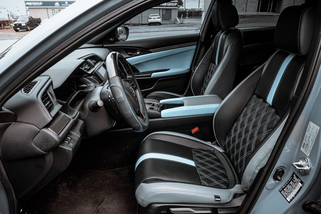 2019 Honda Civic – Katzkin Leather 2019 Honda Civic #95859 / 95995 – Lunar Grey Katzkin Leather with Black Centers, Bahama Wings, Double Diamond Inserts, and Bahama Contrasting Stitch