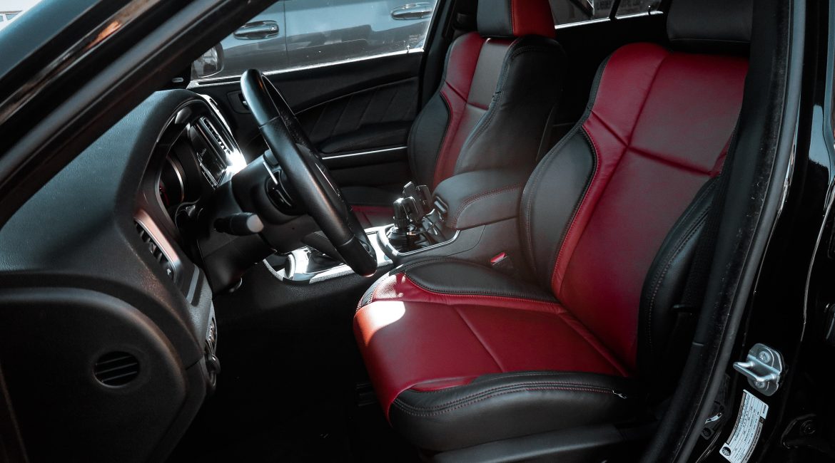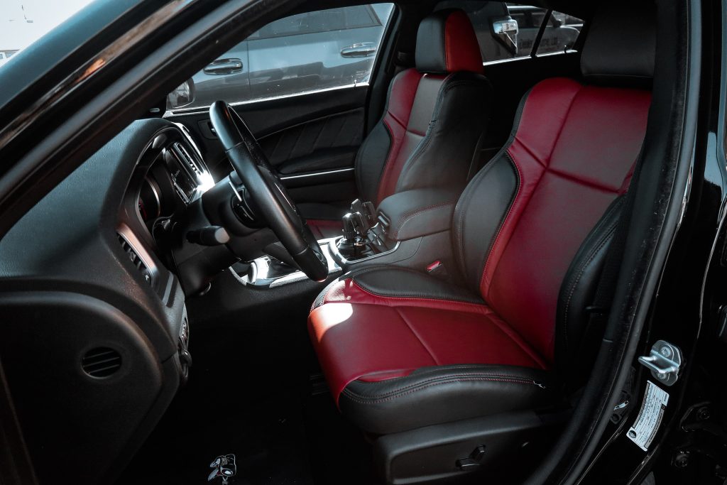2021 Dodge Charger – Katzkin Leather 2021 Dodge Charger #96276 – Black Katzkin Leather with Cardinal Face and Cardinal Contrasting Stitch
