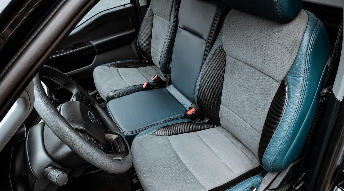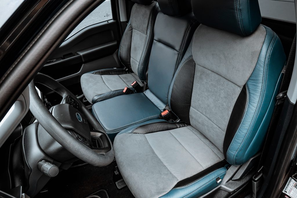 2022 Ford F-150 Regular Cab #96355 – Blue Katzkin Leather, Dark Slate Perforated Body, Blue Vinyl Center, Carbon Shadow Wings
