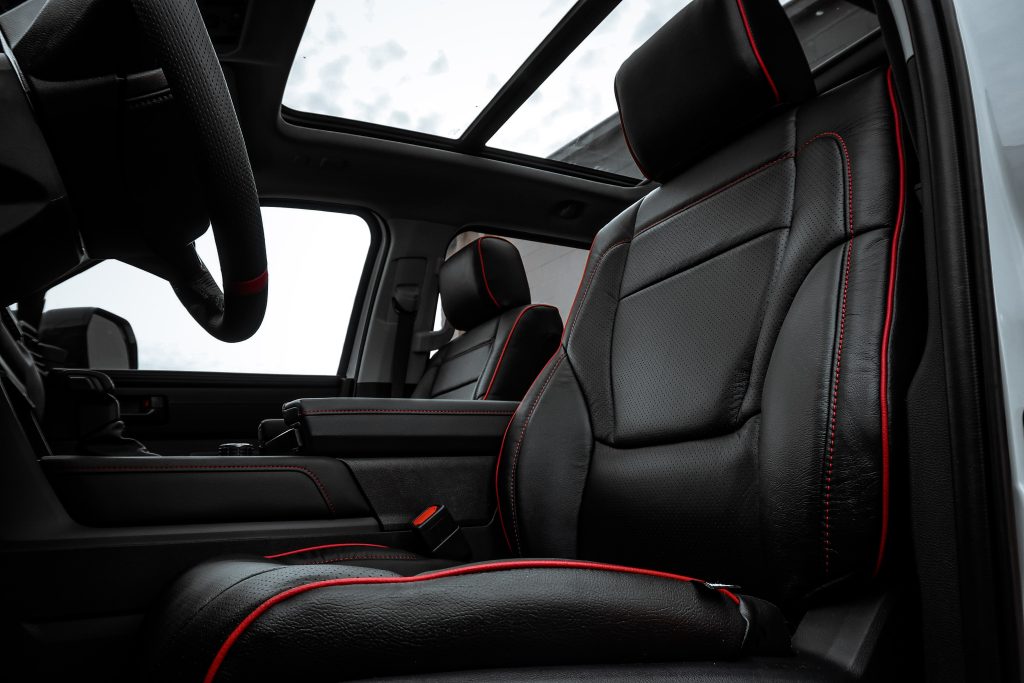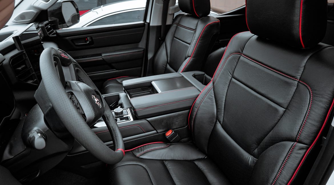 2023 Toyota Tundra Crew Max – Katzkin Leather 2023 Toyota Tundra Crew Max #96471 – Black Katzkin Leather, Perforated Combo, Red Contrasting Stich, Red Piping