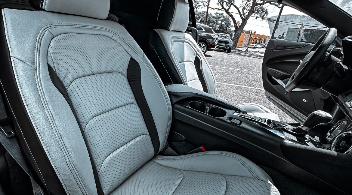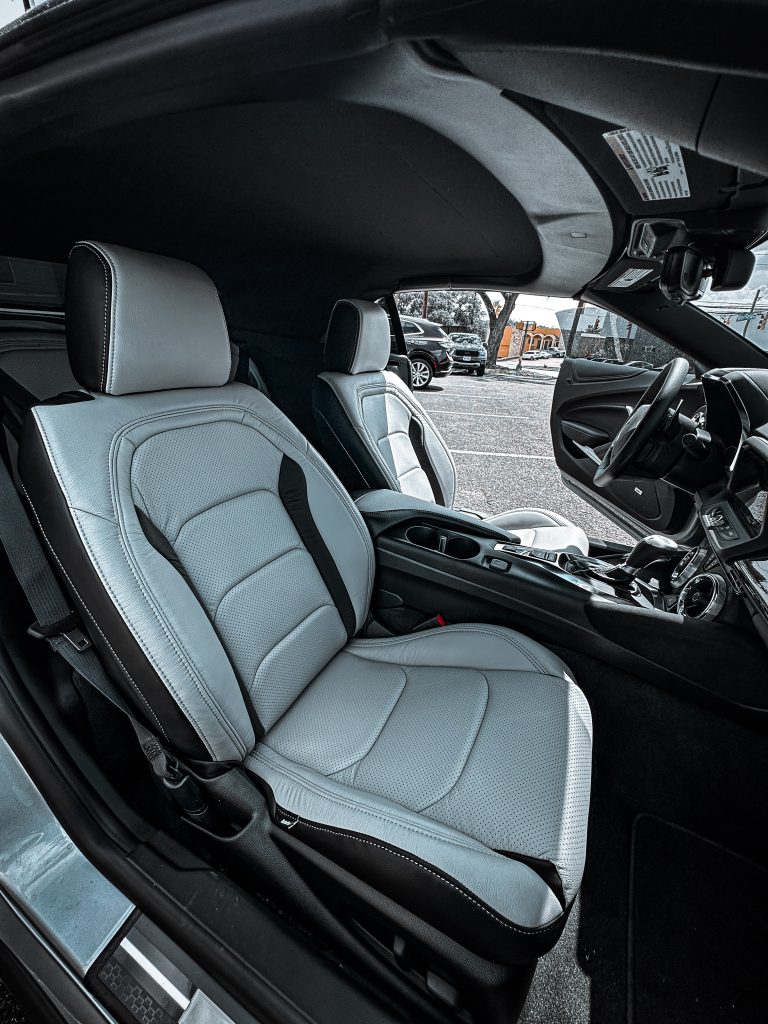 2023 Chevy Camaro – Leather 2023 Chevy Camaro #97632 – Black leather with Frost Face and Stitching, Charcoal Wings & Perforated Body