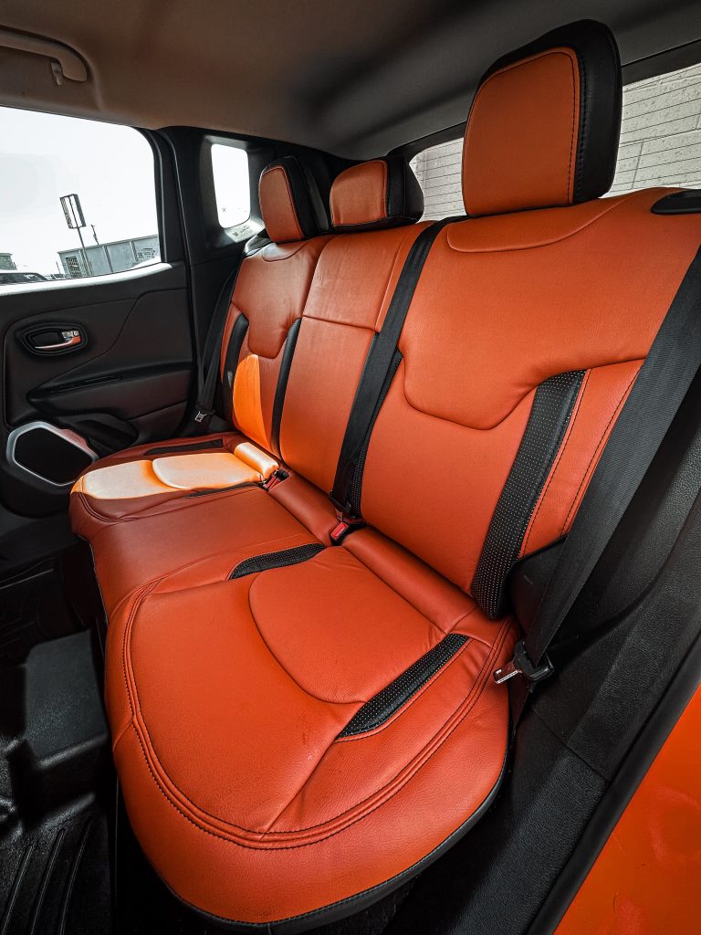 2023 Jeep Renegade-Leather 2023 Jeep Renegade #98313 – Black Leather, Tangerine Facing, Black Stitching, and Barracuda Orange Wings