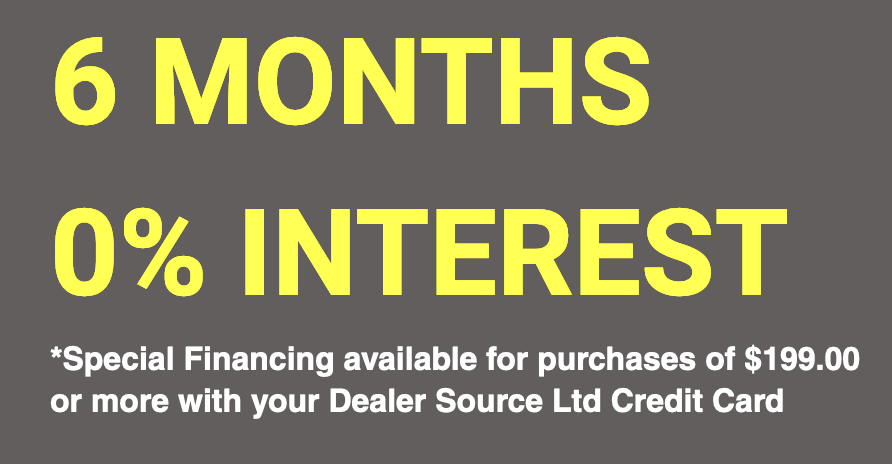 Get 6 months special financing on purchases of $199 or more with your Dealer Source Ltd credit card.*